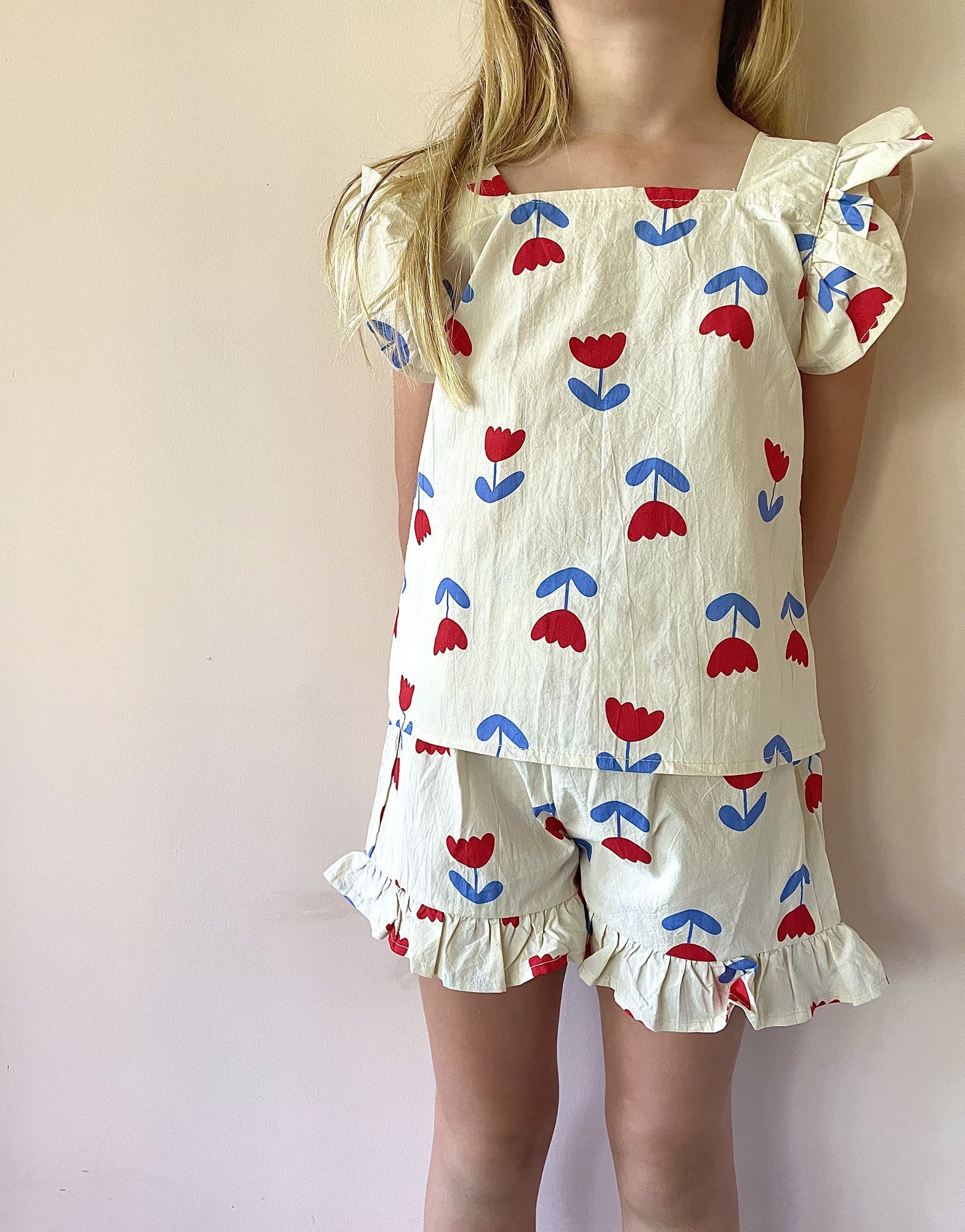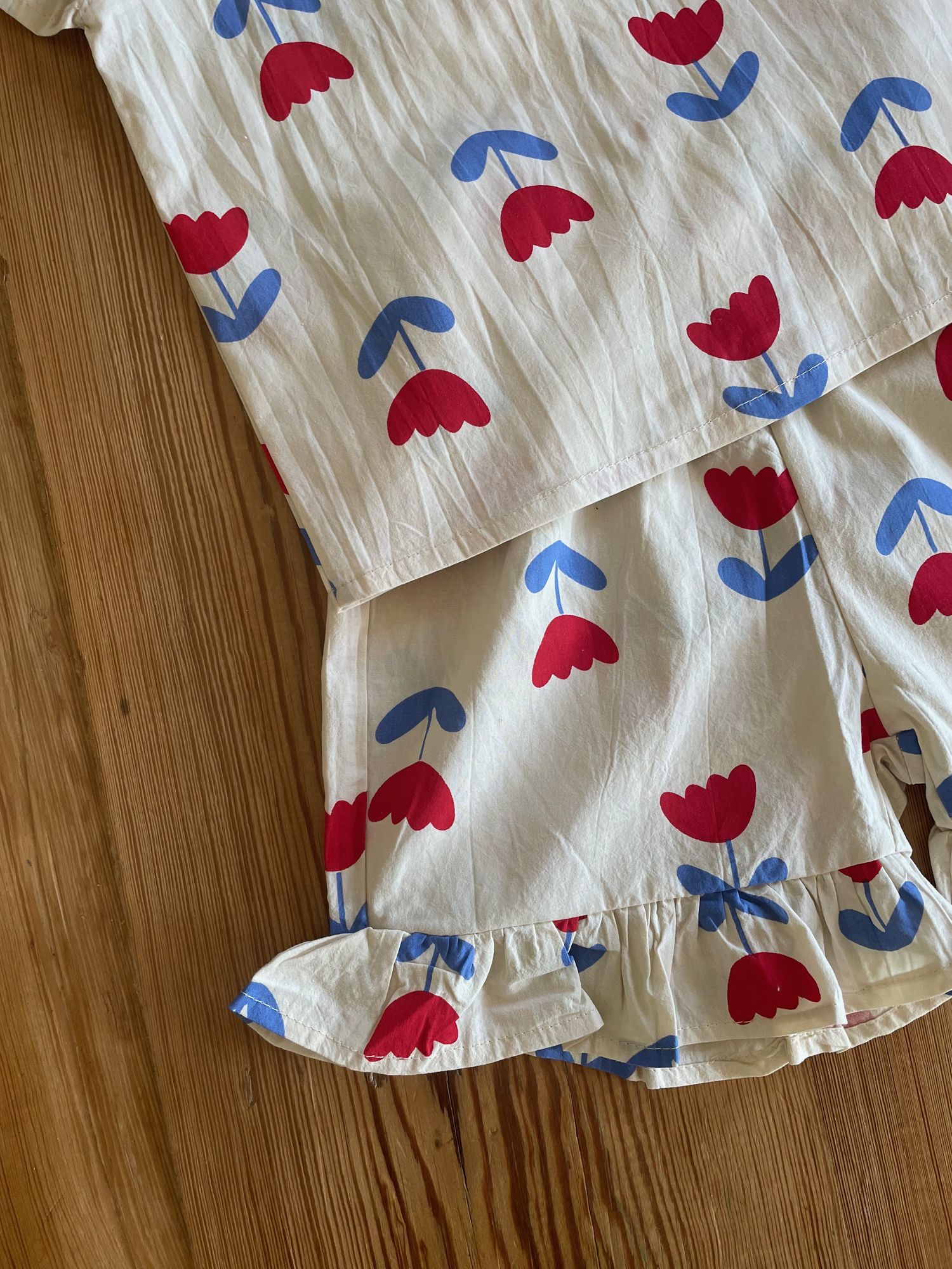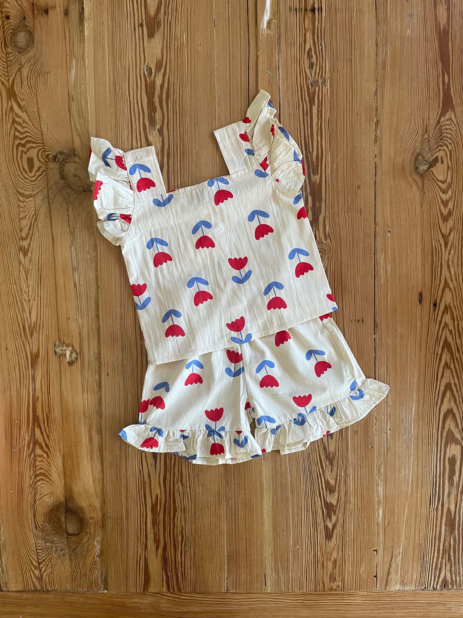 Conjunto para niña de short y musculosa 100% algodón estamapado con flores.