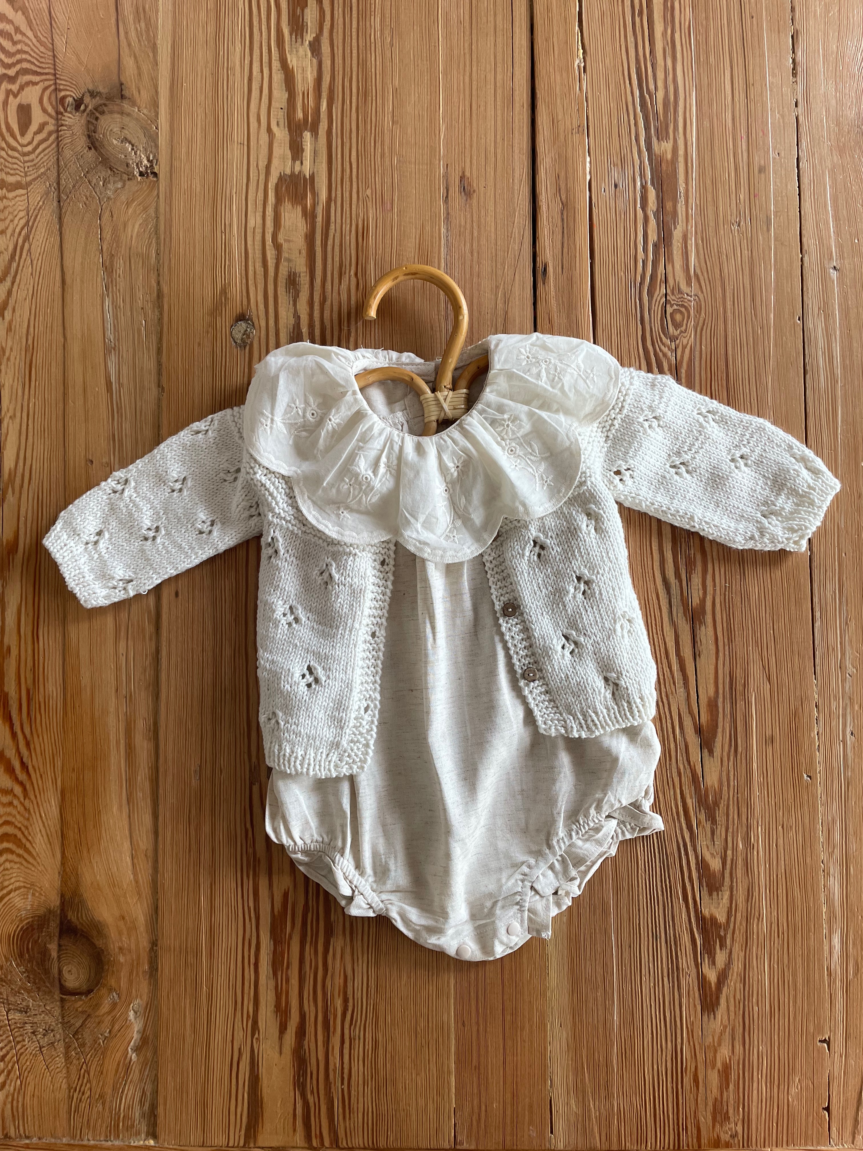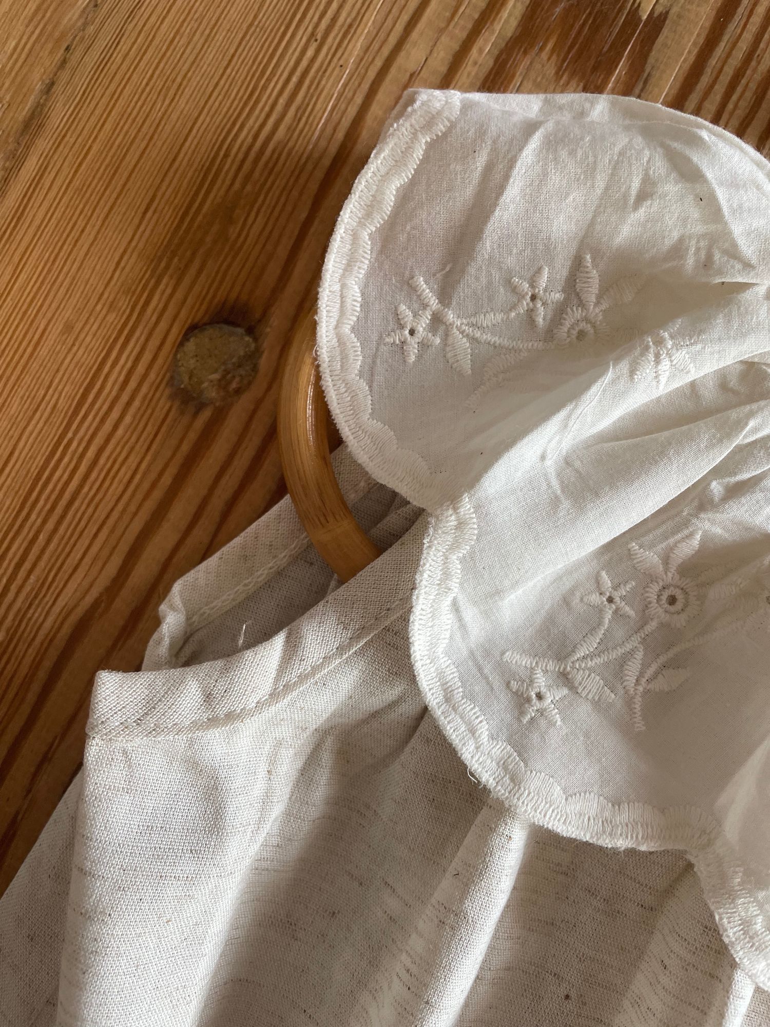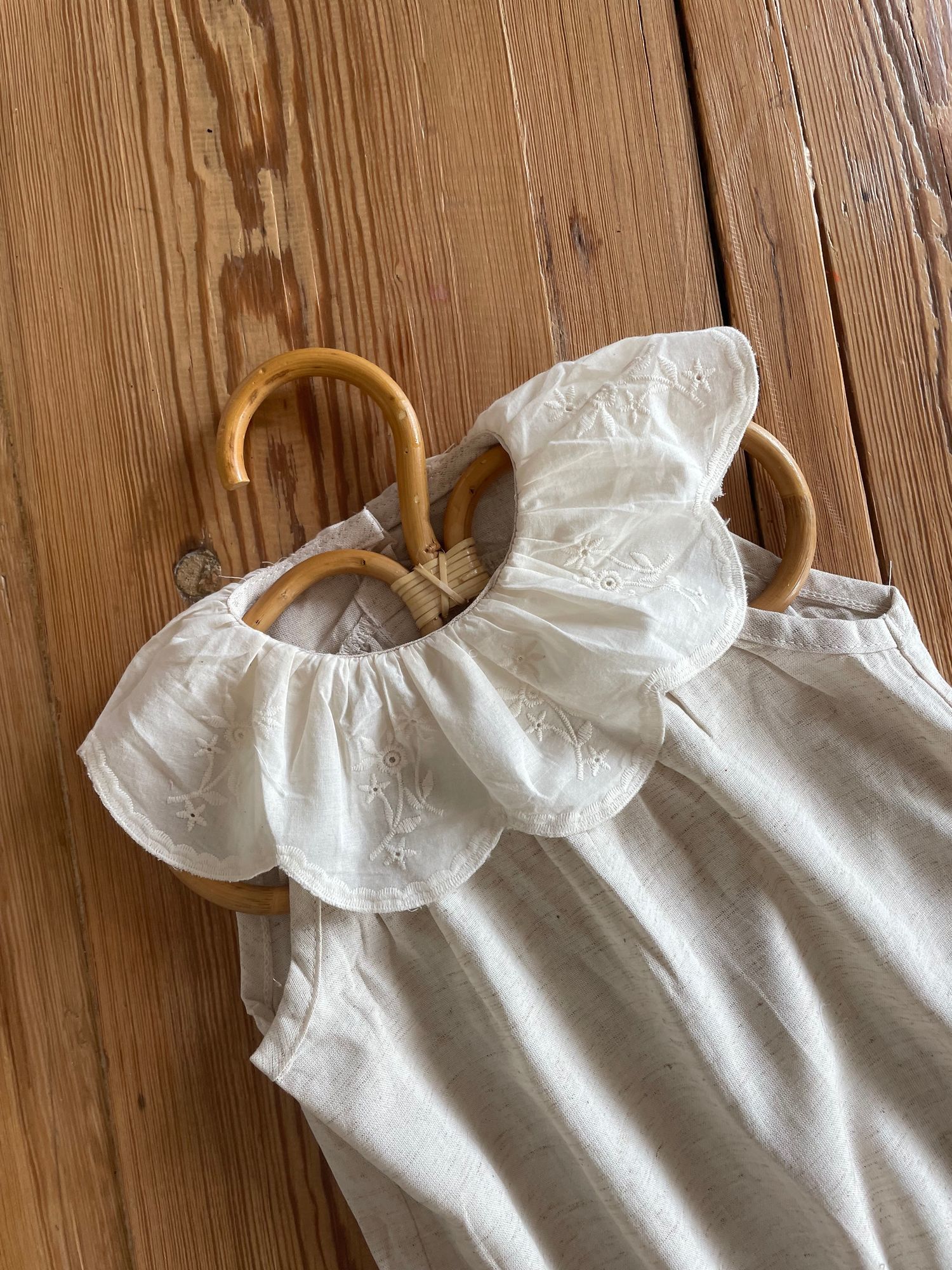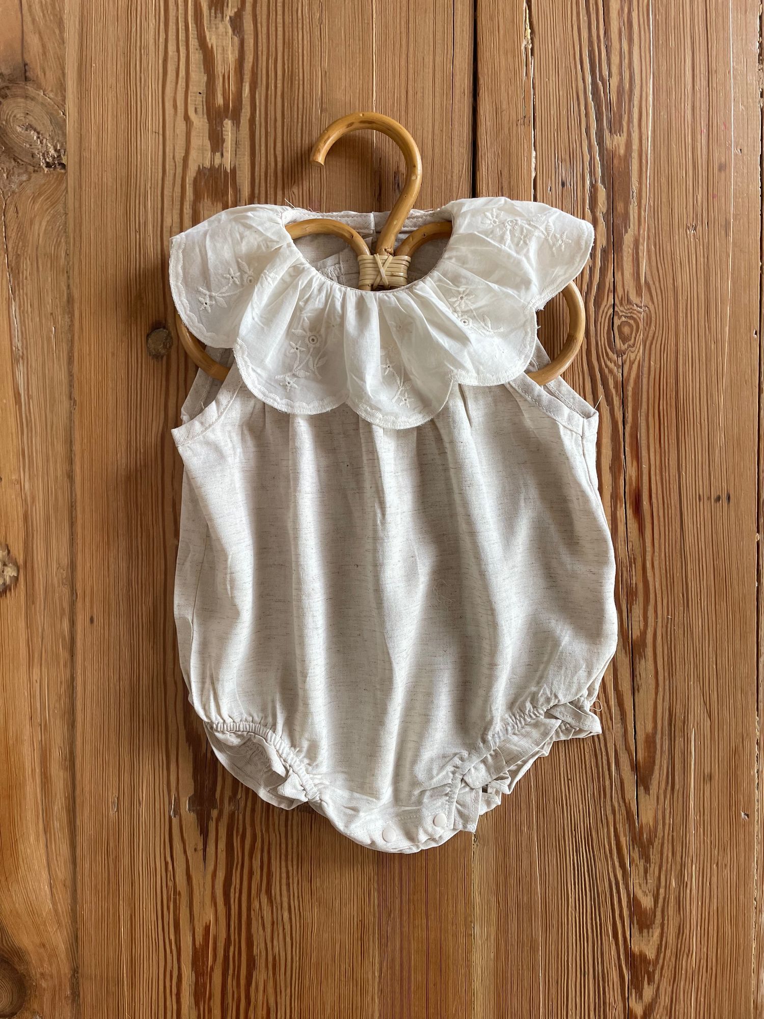 Ranita para bebé de algodón y lino, sin mangas, con cuello de broderie