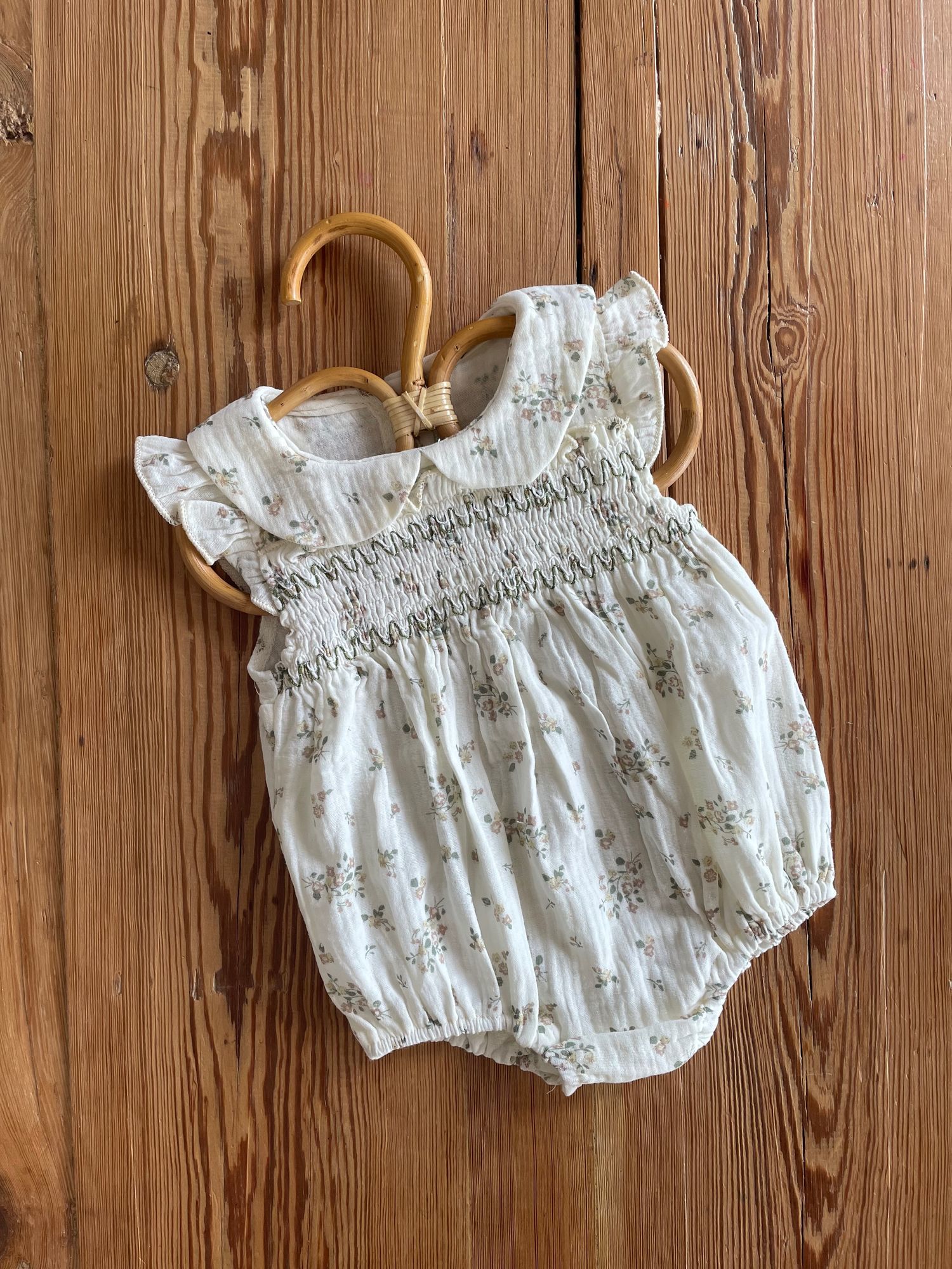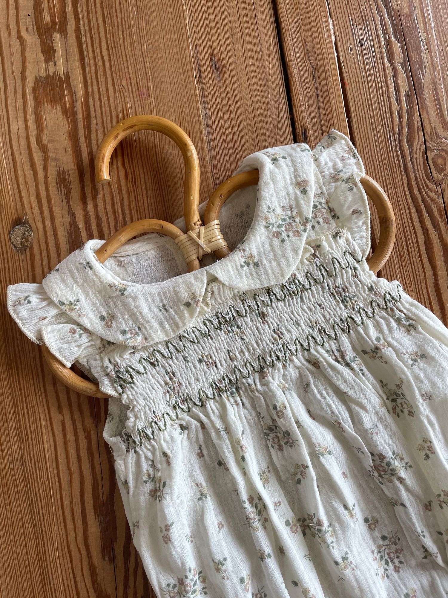 Ranita para bebé, sin mangas, de muselina de algodón, estampada, con punto smock
